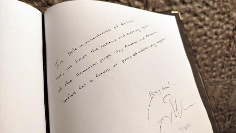 Մենք պատվում ենք հայ ժողովրդի տոկունությունն ու անսասան ոգին. Վենսի գրառումը՝ Ցեղասպանության թանգարանի հուշամատյանում