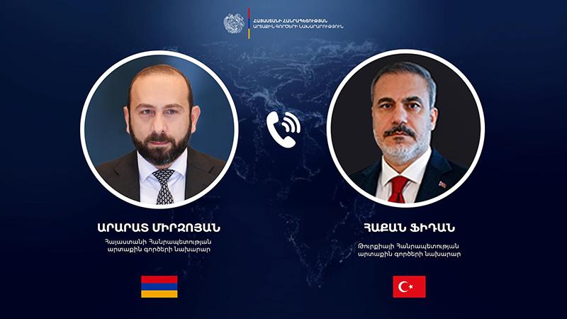 Հայաստանի Հանրապետության ԱԳ նախարար Արարատ Միրզոյանը հեռախոսազրույց է ունեցել Թուրքիայի Հանրապետության ԱԳ նախարար Հաքան Ֆիդանի հետ:   Զրուցակիցները քննարկել են Մերձավոր Արևելքում տեղի ունեցող զարգացումները՝ մտահոգություն հայտնելով իրավիճակի շարունակական սրման կապակցությամբ։   Երկուստեք