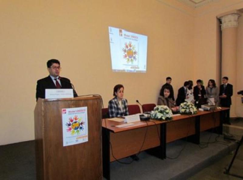 Դեկտեմբերի17-ինՅունեսկօ-իասոցացուած10 դպրոցներիշուրջ60 աշակերտմասնակցելէ Յունեսկօ-իգործերովՀայաստանիազգայինյանձնաժողովիեւՄԱԿ-իհայկականասոցիացիայիհամատեղջանքերովՀայաստանումառաջինանգամիրագործուած«մոդելՅունեսկօէխորհրդաժողովին, որըկրումէր«Երեխաներըյանունմիջմշակութայիներկխօսութեան» խորագիրը: ըստՀՀԱԳՆՄամուլի, տեղեկատուութեանեւհասարակայնութեանհետկաերիվարչութեանհաղորդագրութեան, խորհրդաժողովըկայացել է երեւանիպետականհամալսարանիՊալեաններիդահլիճում: Այններկայացրելէ Մակ-իտնտեսականեւսոցիալականխորհրդիխորհրդաժողովինմանակումը, որիընթացքումմասնակիցներըհանդէսէնեկել ՄԱԿ-իանդամպետութիւններիդեսպաններիդերումեւքննարկել կազմակերպութեան, ինչպէսնաեւՅունեսկօ-իօրակարգիերկուկարեւորագոյնթեմաներ. Կրթութիւնյանունկայուն զարգացման. հանդուրժողականութեան ուսուցում, Մարդուիրաւունքներ.