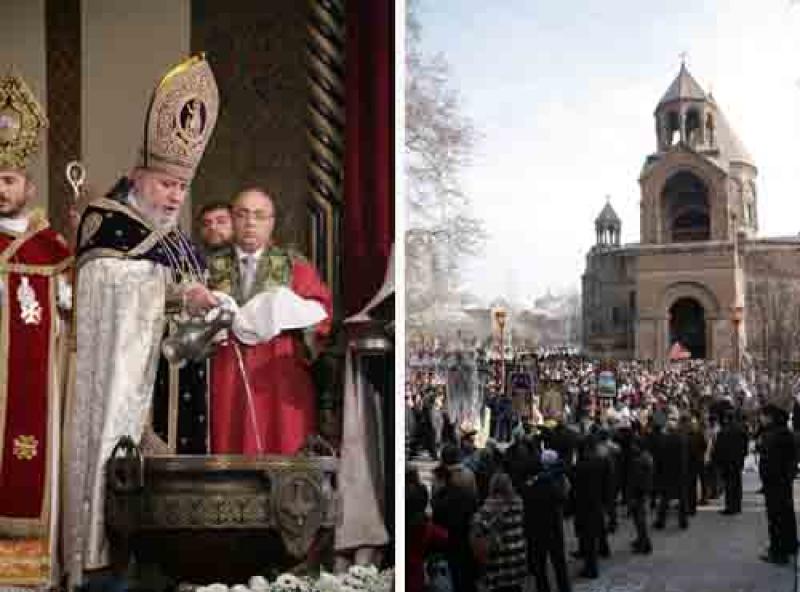 Յունուարի 6-ին Հայաստանեայց Առաքելական Սուրբ Եկեղեցին նշեց մեր Տիրոջ եւ Փրկչի` Յիսուս Քրիստոսի Սուրբ Ծննդեան եւ Աստուածյայտնութեան տօնը: Յունուարի 6-ին` Ժամը 1030-ին, խաչերով ու խաչվառներով պսակեալ հայրապետական թափօրը շարժուեց Վեհարանից`